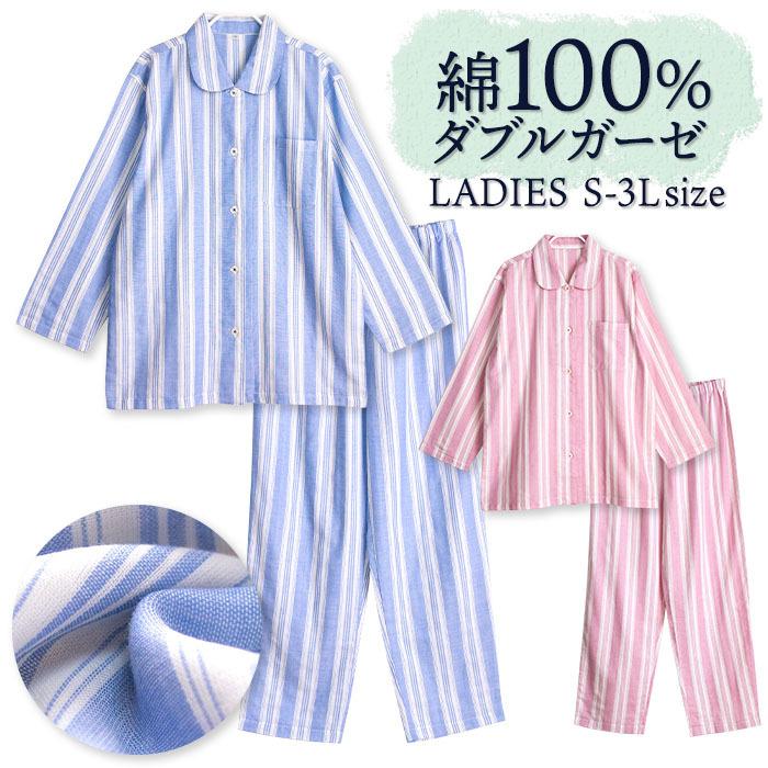 パジャマ レディース 綿100 ダブルガーゼ 長袖 春 夏 前開き シャツ ストライプ柄 ピンク ブルー S M L Ll 3l かわいい おそろい 673 パジャマ屋さん 通販 Yahoo ショッピング